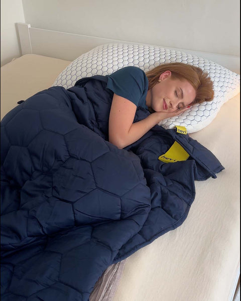 Pătura ponderată Hevi™ stimulează creșterea producției de melatonină cu până la 30%, îmbunătățind calitatea somnului, accelerând adormirea și oferind o odihnă mai profundă și regeneratoare.