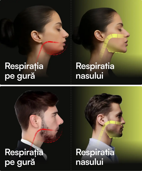 - Reducerea sforăitului - datorită menținerii gurii închise în timpul somnului.